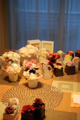 プリザーブドフラワーのフリースタイルレッスンを自宅でいたしました。