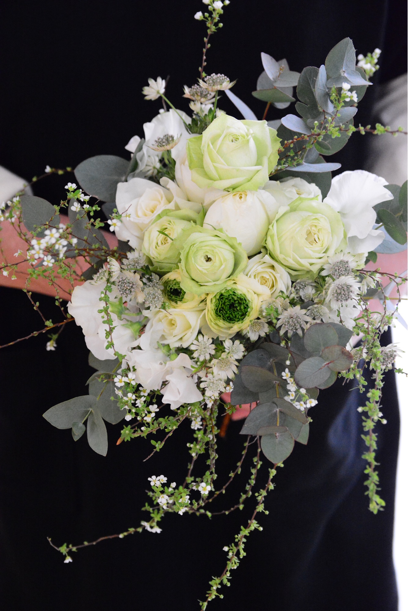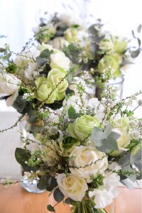 今年初めてのレッスンは、ホワイトとグリーンのブーケ。